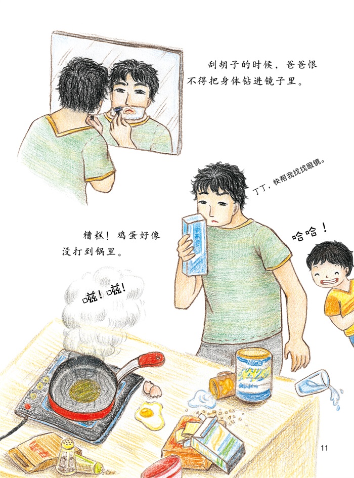 经常丢三落四爸爸为什么到哪里都不会忘记戴上自己的眼镜呢?本文的小主人公对爸爸的眼镜很好奇,终于有一天他找到一个机会,偷偷地藏起爸爸的眼镜,打算好好“研究研究”。可没想到那一天却成了爸爸的噩梦,闹了很多笑话——衣服穿反了,鸡蛋打到了锅外,把胡子刮得乱七八糟……