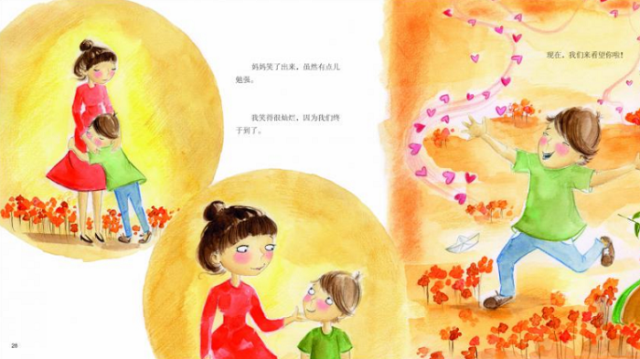 这是一本关于爱的绘本。小男孩和妈妈一起去看望爱的人的途中,遇见了一个与女儿分居的父亲、失去妻子的丈夫、被祖父遗忘的孙女、担心车祸后一直没有清醒的儿子的母亲,他们各自有着自己的遭遇和烦恼,但是这并没有让他们成为愁眉苦脸的人,相反,小女孩从他们身上看到了乐观、开朗、活泼以及爱。此外,小女孩和他们交谈结束后明白,尽管他们在外表、年龄与文化方面不尽相同,但是彼此之间有一个共同点,那就是在他们的生活中,都有一个“像我爱你一样”爱的人。尽管他们经历了生、老、病、死,爱的力量仍然会以不同的形式埋藏于心中。zui后,小男孩和妈妈也终于来到了他们所爱的人的身边……