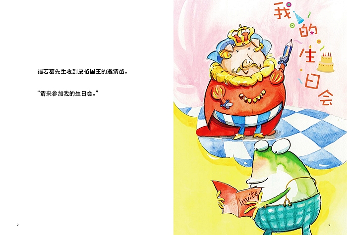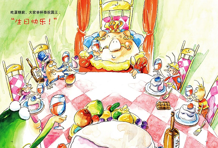 皮格国王要办生日会,邀请福若葛先生、史拜德先生、蒙丝姬多小姐、蕾蒂太太和安特小弟一起来参加。国王摆出了好丰盛的宴席,没想到客人却有点失控……本书为中国台湾儿童绘本资深作者李伯峰(螳螂)的作品,以皮格国王的生日会为主题,在故事中以各种动物的英语名音译为中文,加入做客小礼仪,故事后面还有这几种动物的英文单词介绍和小简介,向小读者们传递生物小知识。是一本多功能的有趣的绘本。