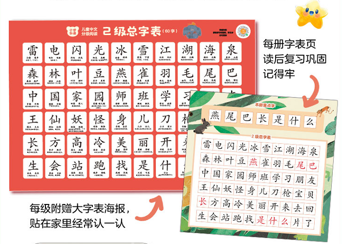 这是一套真正适合中国孩子的分级读物。 ★亲近母语20余年研究与探索的匠心之作。 ★科学识字、快乐阅读、通识教育、文化认同、人格养成,助力儿童全面发展。 这套书是《“小步乐读”儿童中文分级阅读》项目的“1级”,共12册,适合3~5岁孩子阅读。 内容是绘本形式,主题丰富,涉及天文、自然、岁时、山河、草木、鸟兽、身心、人家、家国,以及童谣、中国传统故事等。旨在进行阅读启蒙,符合3~5岁儿童认知、情感、语言和发展特点。 文本内容兼顾认知、文学、人文和科学,配套线上、线下资源丰富多彩,配有字表海报、朗读音频资源、专家阅读指导视频、家长阅读手册、线上阅读能力测评等,帮助孩子快乐识字,爱上阅读。