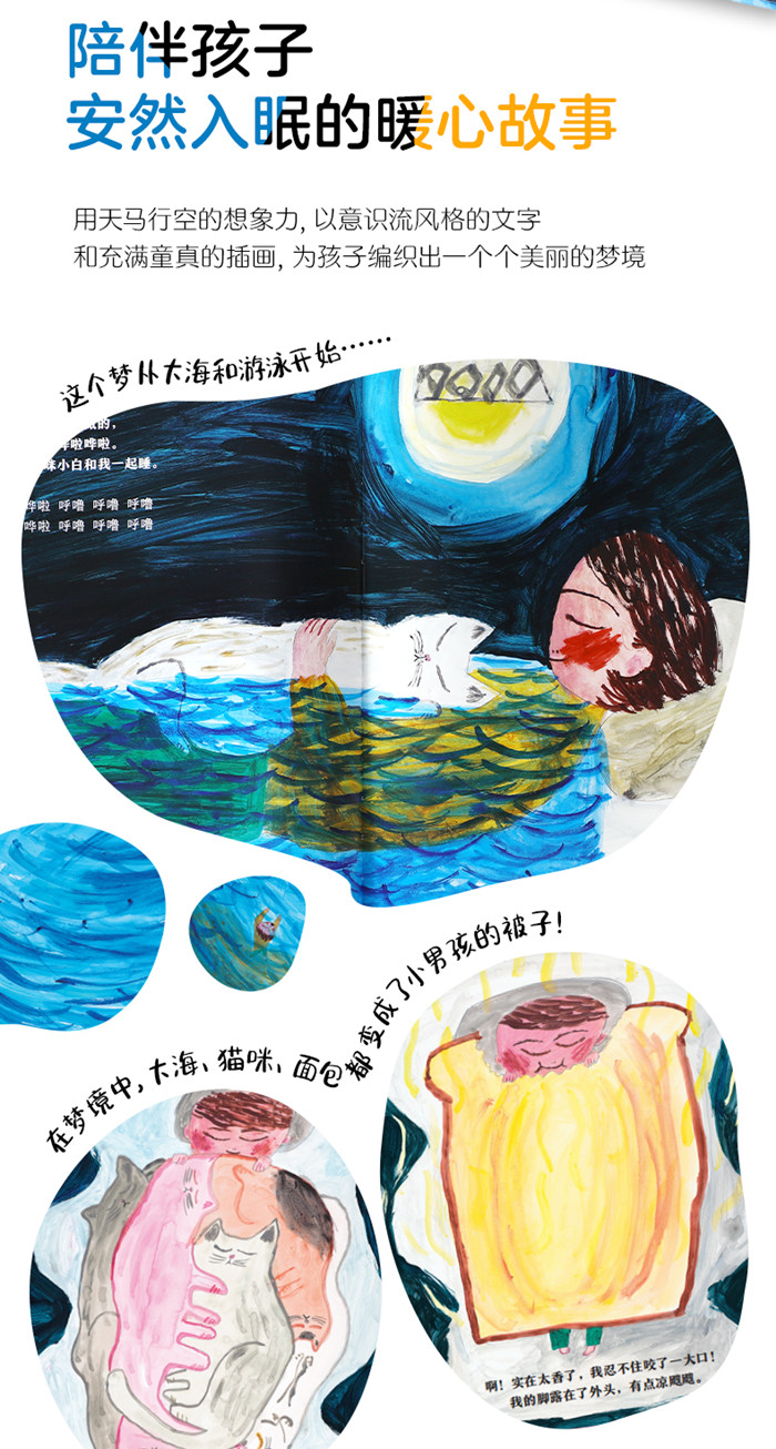一本充满想象力的绘本,让孩子发挥天马行空的想象力 让孩子安然进入梦乡的暖心绘本,故事主题贴近孩子生活 画风极具特色、色彩鲜艳、语言朗朗上口,既能吸引孩子目光,又便于孩子阅读故事
