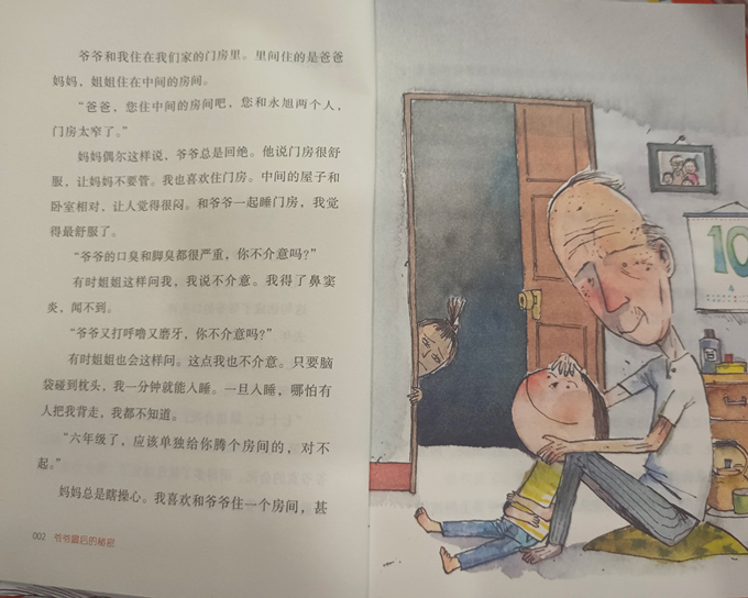 1.歌声 爷爷七十九岁。 “七十九, 适合死亡的年龄。” 这句话成了爷爷的口头禅。 去年,爷爷说: “七十八, 适合死亡的年龄。” 前年,爷爷说: “七十七, 适合死亡的年龄。” 次听到这话的时候,我的心里怪怪的,担心爷爷真的会死。听得多了就没感觉了,现在感觉熟悉得就像听爷爷的呼噜声。 爷爷和我住在我们家的门房里。里间住的是爸爸妈妈,姐姐住在中间的房间。 “爸爸,您住中间的房间吧,您和永旭两个人,门房太窄了。” 妈妈偶尔这样说,爷爷总是回 。他说门房很舒服,让妈妈不要管。我也喜欢住门房。中间的屋子和卧室相对,让人觉得很闷。和爷爷一起睡门房,我觉得 舒服了。 “爷爷的口臭和脚臭都很严重,你不介意吗?”有时姐姐这样问我,我说不介意。我得了鼻窦炎,闻不到。 “爷爷又打呼噜又磨牙,你不介意吗?” 有时姐姐也会这样问。这点我也不介意。只要脑袋碰到枕头,我一分钟就能入睡。一旦入睡,哪怕有人把我背走,我都不知道。 “六年级了,应该单独给你腾个房间的,对不起。” 妈妈总是瞎操心。我喜欢和爷爷住一个房间,甚至不愿去想和爷爷分开的事。倒是偶尔想象着和爸爸分开生活。 爸爸说我毫无用处,偶尔还说我是“傻瓜”“不成器的家伙”。我学习不好,也没什么才华。爸爸担心我以后养不活自己。这样的话听多少遍都不习惯。我感觉自己像泄了气的皮球。 爷爷和爸爸的想法不一样,他认为我是个有用的孩子,相信我有能力养活自己。 “你很乖,理解老人的心,这就是你的才华。你有鼻窦炎,闻不到气味,所以在浑身臭味的老人面前,你也能不皱眉头,善待老人。如果你到养老院之类的地方工作,一定能成为 受欢迎的员工。” 爷爷这样说的时候,我感觉自己膨胀起来,变得鼓鼓的。我有希望成为有用之才了。妈妈说在我上初中之前,无论采取什么手段,一定要治好我的鼻窦炎。我的想法是用尽千方百计,不理会鼻窦炎。因为这是我实现梦想必不可少的病症。 我的梦想是“为老人服务”。我和爷爷上网搜过了,的确有这种职业。我喜欢和老人在一起。小时候我就不喜欢幼儿园,却喜欢养老院。睡觉前要摸着爷爷的额头才能安心。如果摸不到额头,至少也要摸到脚指头。不知道以后结婚了怎么办。结婚后要和妻子一起睡才行,可我没有信心和爷爷分开。 听我这么说,爷爷扑味笑了。
