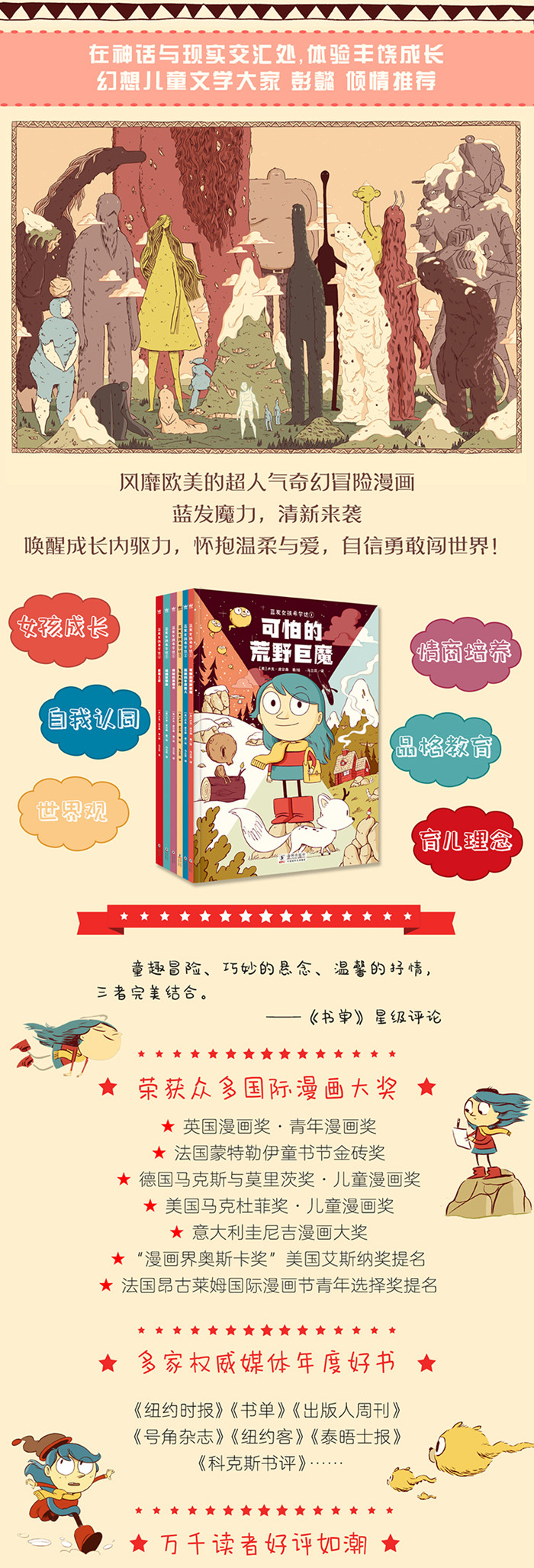★Netflix 出品、豆瓣9.5高分、安妮奖动画片《希尔达》原著漫画 ★荣获英国漫画奖、法国蒙特勒伊童书节金砖奖、德国马克斯与莫里茨奖、美国马克杜菲奖儿童漫画奖、艾斯纳奖等多项重磅 ★《纽约时报》《书单》《学校图书馆杂志》《科克斯书评》等多家权威媒体年度好书 ★奥斯卡金像奖导演吉列尔莫·德尔·托罗和漫画大师迈克•米格诺拉盛赞 ★英国漫画奖得主、《探险活宝》编剧 分镜师卢克·皮尔森代表力作 ★英美亚马逊上千读者全五星好评:“继长袜子皮皮之后 zui 棒的女孩角色!”