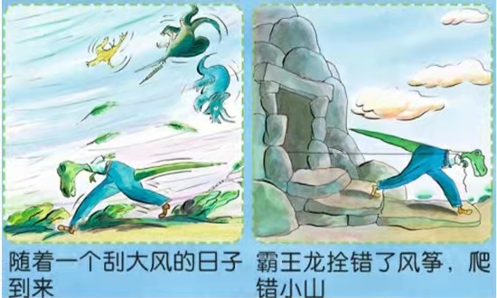 在家长和孩子共读绘本时,可以由家长引导孩子推测霸王龙丢失眼镜的“经历”,也可以让孩子编写一个“霸王龙消失的*原因”的故事,在这个过程中锻炼孩子的想象力和逻辑分析能力。