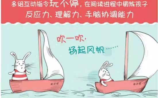 克劳迪娅·卢埃达创意互动图画书《好饿的兔子》后续惊喜新作! 兔子要出海啦!你想和他一起去冒险吗? 吹一吹,扬起风帆;摇一摇,掀起波浪; 深入海底,敲一敲沉船的窗。 去探索吧!宝藏就在前方!