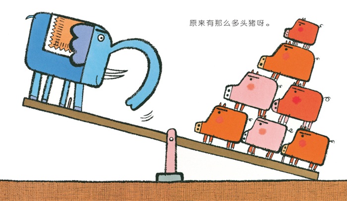 猪怎么比大象还要重呢?原来跷跷板的另一边有7只猪呢!翻开新的一页,猪再怎么胖也不会重过长颈鹿吧?原来长颈鹿是两条腿在地上支撑着呢!蓝色的猪怎么比红色的猪重呢?它们看上去差不多大小嘛?原来蓝色的是一头机器猪。一盆花竟然比两个人还重?哈哈,原来是长着翅膀的小天使!哎呀,这一次跷跷板是平的,另一边是什么呢?是另一个小孩。本书故事幽默风趣,具有一定的知识性内涵又有利于想象力的拓展