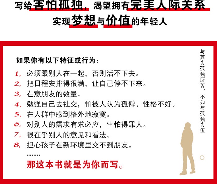 停止依赖社交,停止讨好他人,停止迎合世界,孤独是你认识自己、提升自己zui好的机会!你在热闹中失去的,会在孤独中找回来。让孤独成为你成长的力量。