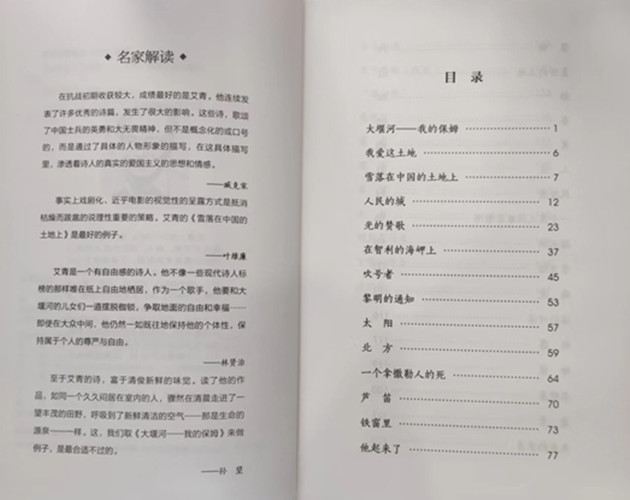 《艾青诗选》收录了诗人在不同年代创作的具有代表意义的诗歌,诗人在生活里汲取创作的源泉,传达着光明与希望的讯息,永远忠实地给读者以心灵的慰藉,播撒下对祖国的忠诚和爱的种子。艾青的诗带着深沉而忧郁的思索,如黑暗中的灯塔照亮我们的人生。艾青的诗始终坚持“忠于现实,用自己的全部智能去和现实结合”, 他的作品深刻反映他所经历的时代的社会风貌,是一部集历史性、思想性和艺术性于一体的诗集。本书真实反映历史,高度浓缩作者思想,蕴含着强烈深沉的情感。
