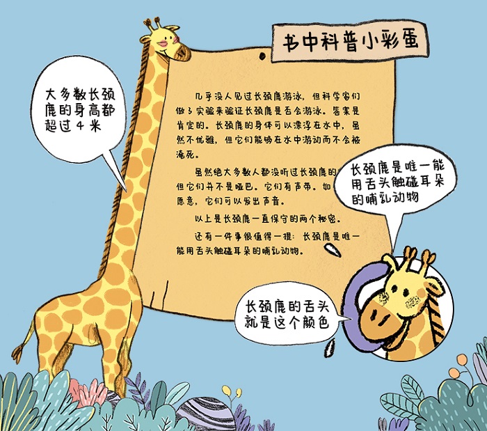 当孩子遭遇负面情绪或不利处境的时候,如何正视自己,拥有正面的心态,积极思考解决办法显得尤为重要。换句话说,拥有一颗强大的心脏很重要。每个孩子的成长道路上都会遇到挫折,比如发现自己力量小、很难做到某事、自己并不是棒的等等,大人认为微不足道的小事其实很多时候都会让孩子感到身心受挫,从而产生不良的情绪或想法。那么家长如何去适时地引导?这本《没有脖子的长颈鹿》会给家长一个积极参考。,故事新颖,思想正面。长颈鹿没有长脖子,乍一听这是个匪夷所思的事情,再一想稍微带有一点悲伤的色彩。但是它的故事内容实际上非常励志。第二,它用一种幽默轻松的方式,展示了长颈鹿的尴尬处境。比如格特鲁德要拿着望远镜才能看清远处(长颈鹿竟然会有望远镜!);吃高处的新鲜树叶的方法竟然是用绳子固定自己再让猴子拉到高处(真稀奇!);同伴在八卦她听不清楚而大声嚷嚷:香蕉?游泳还是卡车等(出其不意的喜剧效果),这些搞笑的情节让孩子会心一笑的同时明白缺陷并没有那么可怕,而负面情绪才是影响身心健康的罪魁祸首;第三,激励孩子不再畏惧、害怕和拒绝改变。在这个故事中,格特鲁德即使没有长脖子,但是她竟然学会了游泳、唱歌、开演唱会,成为一只史无前例的长颈鹿。这会鼓舞着孩子放下自卑、害怕、畏惧,变得越来越勇敢自信,让自己变得潜力无限。就像作者所说:很多时候,生活并不友善。它会欺负你,戏弄你。我希望通过绘本在孩子小小的内心播撒强大的种子,当孩子遭遇命运的不公时,为孩子守住一点光亮,给孩子一个方向.....然后,一切都会好起来。