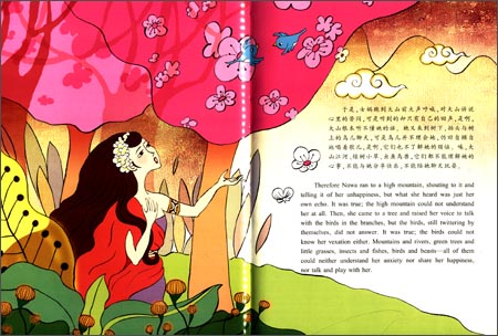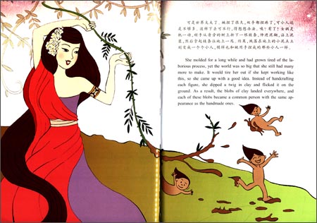 《中国传统故事美绘本:女娲造人(中英文双语版)》中英文双语,并配以精美的绘图,力求以生动活泼的文字、地道流畅的英文、引人入胜的故事、图文并茂的形式引导大家轻松阅读。