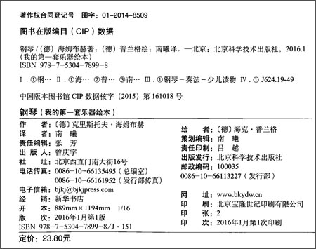 《我的 套乐器绘本(套装共7册)》包括《钢琴》、《小提琴》、《单簧管》、《长笛》、《小号》、《吉他》、《竖笛》共7册。《我的 套乐器绘本(套装共7册)》是为所有学习钢琴和想要了解钢琴的人量身定做的使用指南。它绝不是普通的钢琴教科书,它借助形式多样、细节丰富的图片和短小精练的描述来介绍钢琴,深化读者对钢琴的认识。《我的 套乐器绘本(套装共7册)》讲述了钢琴的历史、钢琴的前身和朋友,阐明了演奏钢琴的正确指法和姿势,介绍了一些知名的作曲家和演奏家。除此之外,还有很多有趣的内容。《我的 套乐器绘本(套装共7册)》既适合学生阅读,也可以为教师提供参考。无论对初学者还是进阶者,它都是不可多得的良师益友。