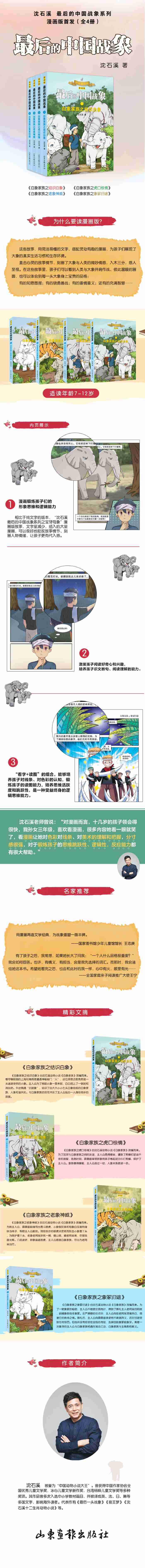 漫画版《白象家族之虎口惊情》由沈石溪动物小说《白象家族》改编而来。为了加深与白象家族之间的友谊,主人公勇捅蜂巢,遭到了熊蜂们紧追不舍的报复,危急时刻,霹雳雄率领群象用鼻子卷起泥沙扑打熊蜂,保护了主人公。象群喜得蜂蜜,主人公逃过一劫,人象关系更进一步。主人公回家路上偶遇一只凶恶的食人虎,虎口惊情,主人公想要爬到树上躲避老虎,却因太过慌张而屡屡失败,命悬一线之际向白象家族发出求救信号。头领霹雳雄神兵天降,主人公喜出望外,白象VS恶虎,一场激烈的战斗即将展开……