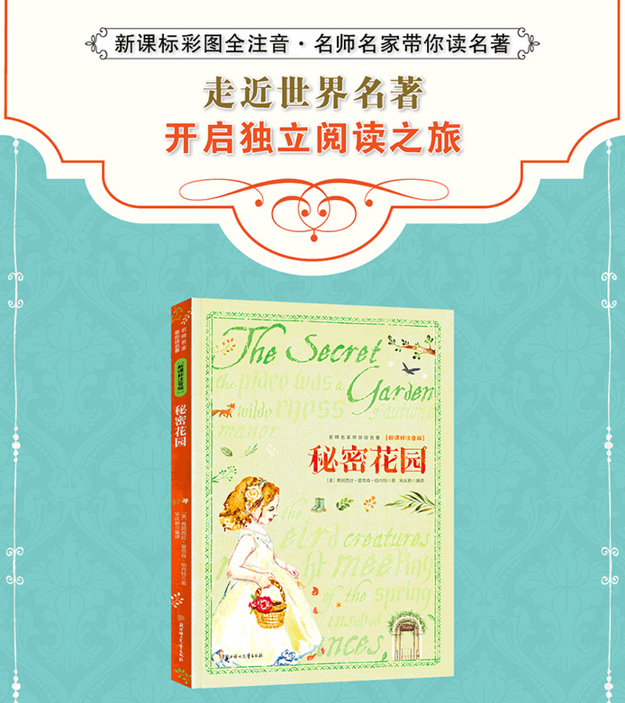 《秘密花园》是美国著名女作家伯内特的传世经典名著,它讲的是一个关于大自然的魔法和美好心灵的故事。故事的主人公玛丽是个性情古怪的小女孩,她在父母双亡后,被送到英国姑父家里。玛丽在这幢神秘阴沉的庄园里的一次无意发现,竟开启了一个禁闭已久的秘密花园。