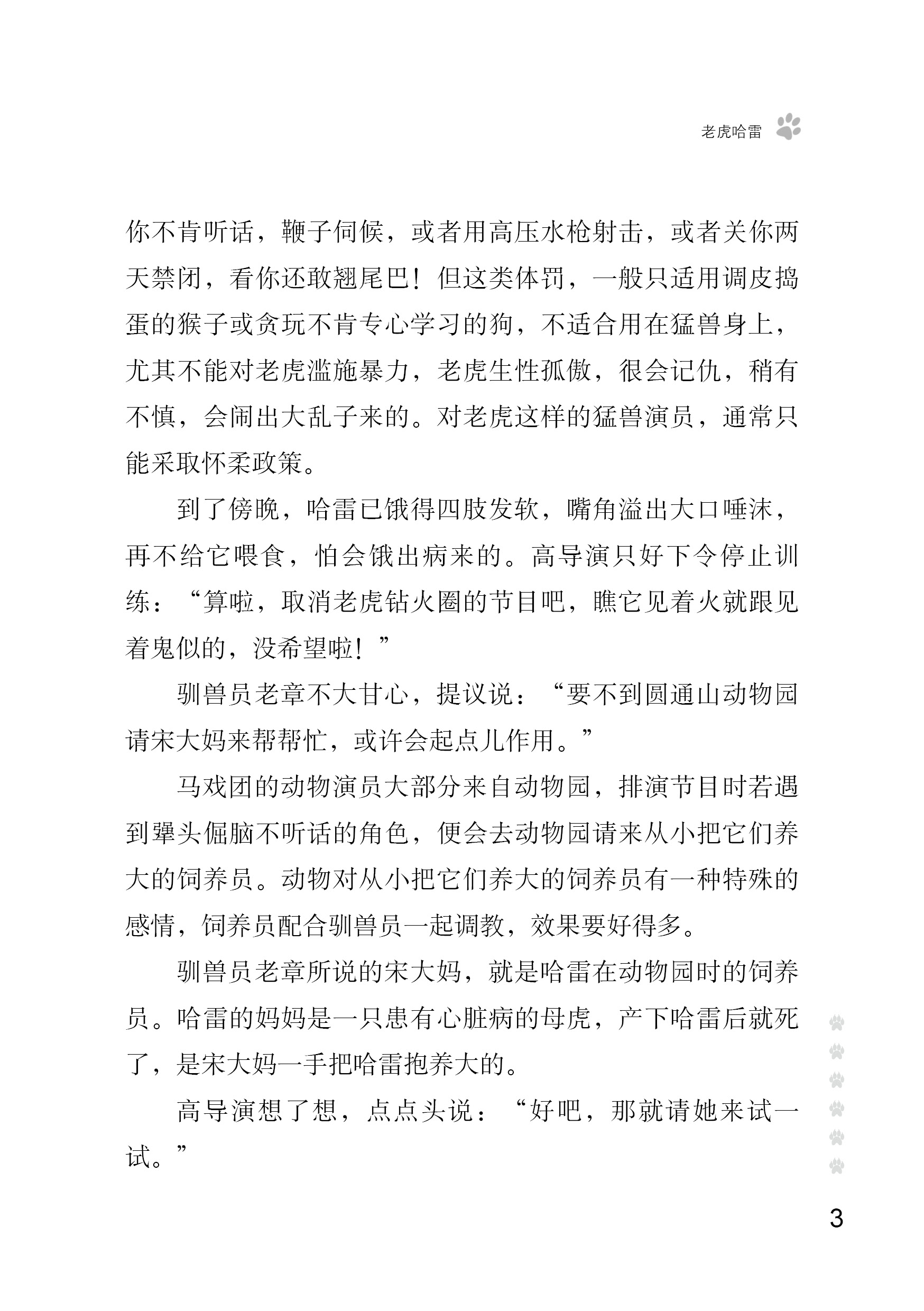 哈雷是一只两岁的雄虎,聪明伶俐,到阳光大马戏团只有半年多时间,就学会了高台跳跃、走跷跷板、龙虎斗等好几个节目,很受观众欢迎。