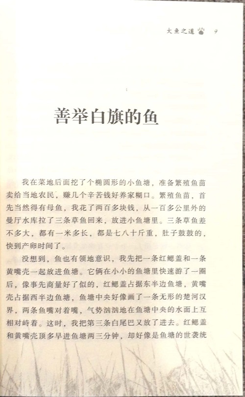 鱼道 在象形的方块汉字中,“道”是个多义字。老子《道德经》开篇第一句就是“道可道,非常道”,扑朔迷离,玄妙深奥,让人摸不着头脑。“道”既可指路,也可指说话,也可指品德,又可指一种宗教,又可指事物的规律……日本还有茶道、花道、剑道、武士道的说法,似乎这“道”字还进入了美学范畴,蕴涵着特定的文化礼仪与文化氛围。 前几天一位搞古文字研究的朋友来家闲聊,谈到“道”字,他说,“道”由一个“首”和一个“□”组合成,而人类的生育,只要是顺产,都是头先走出来,所以,“道”字最原始的解义,就是生殖过程,新生命的诞生,最美妙的自然现象。 朋友对“道”字标新立异的诠释,就像无意中.敲击了电脑的某个键盘,使我储存在记忆深处的鱼母的故事一幕幕显示在眼前。 那天清晨,天还蒙蒙亮,我就到离寨子不远的孔雀湖去看我昨晚扎在芦苇秆上的八架金丝活扣是否逮着了野鸭。 运气欠佳,八架金丝活扣七架是空的,剩下的一架逮着只一文不值的小麻雀。爬山爬出一身臭汗来,我想冲个凉。 孔雀湖占地上千公顷,青山环抱,碧波荡漾,水草丰盛.水鸟飞翔,景色极美。丰沛的湖水越过山垭.沿着一级一级石坎淌下去,灌进山下的河道,就成了流沙河的发源地。 陡峭的山坡垂挂了一道宽约二三十米的大瀑布.是个天然淋浴场。太阳刚刚擦亮湖面,天色尚早,四周没有人.我脱光了顺着石坎钻进瀑布,让激流给我按摩。正洗得痛快.突然,隔着水帘我看见山下被瀑布冲出来的那片清澈的水潭里,有一条黑色的影子在晃动。我将一只手掌伸进瀑布去,撕开了水帘,哈,原来是一条大鱼在水潭游弋,乌黑的背鳍像面黑色的旗帜,在绿水间飘舞。 每年的四五月间,有一种名叫黑鲩的大鱼,就会从澜沧江下游溯江而上,游进流沙河,一直游到终点站——孔雀湖来产卵。鱼卵在温暖的孔雀湖孵化出来后.生活七八个月,长到比巴掌大一点时,便顺着瀑布冲下流沙河.游进澜沧江去。四五年后,这些小鱼长成一米来长重达百斤的大鱼,便会准确无误地顺着原路返回孔雀湖来产卵。孔雀湖既是鱼的产院,又是鱼的摇篮。 没能逮到野鸭,要是能拖条大鱼回去.也蛮不错的。 我很兴奋,赶紧跑出石坎,到小树林折了根手腕粗的树枝.又扯了一根手指粗的藤子,准备捉鱼。 大鱼拼命甩动尾巴,游进瀑布,一个打挺,跃上一层石坎,然后,平躺在石面上,在瀑布的浇淋下,翕动着嘴鳃,大口大口喘息着。 我从没见过这么大的黑鲩,足足有一米半长,身体比大蟒蛇还粗,少说也有一百五十斤。黑鲩又叫螺丝青.普通的黑鲩脊背是黑色的,鱼肚皮是青蓝色的,但这条大鱼却浑身墨黑;它的肚子鼓得像颗大大泡泡糖,毫无疑问,里面塞满了鱼子;一般的黑鲩嘴唇不长胡须,它却嘴唇两侧各有一根一寸长的触须,一看就知道,是一条有相当资历的大鱼,堪称鱼母。鱼母者,女中豪杰,女中魁首的意思。 两三丈高的山坡,被瀑布冲刷出七八道石坎,像层层梯田;我站在最高那层石坎,等候着鱼母光临。 鱼母喘息了一阵,又一个打挺,跳到更上一层的石坎.就像爬楼梯似的层层登高。开始时,它每跳一层就躺在石板上喘息两三分钟,积蓄了力量后,再接着往上一层石坎跳,跳到第四层石坎后,它明显地气力不支了.间歇的时间越来越长,躺在石板上大口大口地喘息,往往要五六分钟后才能缓过劲来继续往上跳。P1-3