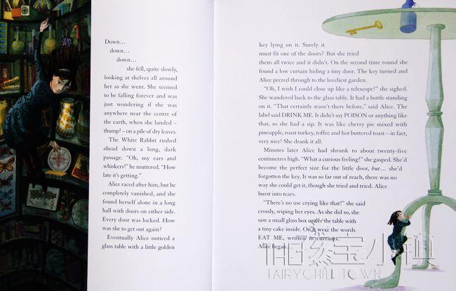 故事的主角爱丽丝,从兔子洞掉进一个充满奇珍异兽的梦幻世界,遇到各种懂得说话的动物。这童话自1865年出版以来,一直深受不同年纪的读者爱戴,相信是由于作者巧妙地运用不合逻辑的跳跃方式去铺排故事。《爱丽丝梦游仙境》是一个典型“荒唐文学”的例子,亦是其中一个最具影响力的童话故事。