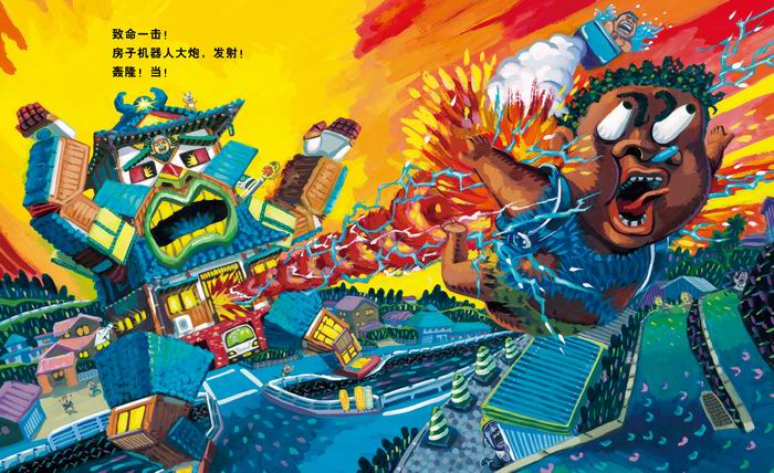 前进,房子机器人!把欺负人的小铁一拳打飞!可是,可是……为什么心里还是堵得慌?依靠想象的房子机器人打败小铁,有什么意思呢?