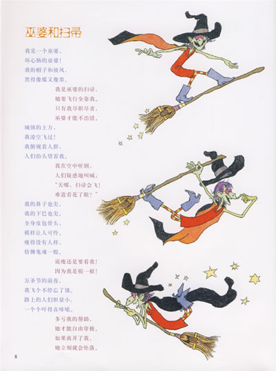 这本别致的书是用“不同的声音”讲述的。它利用韵脚、节奏和反复等写作技巧来吸引人们参与朗读,享受诵读带来的快乐!这些故事虽然有些恐怖,但是非常有趣,你会在书里遏到与众不同的巫婆、僵尸、幽灵和食尸鬼!明快的语言风格加上诙谐、俏皮的插图,必将给读者带来一个个意想不到的惊喜!