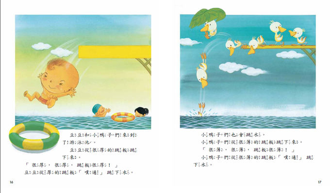 小鴨子們就抓住豆豆的細手臂盪秋千。