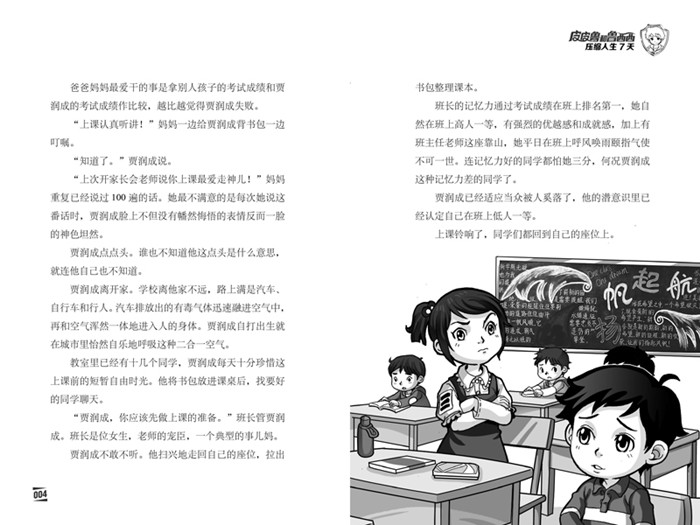 皮皮鲁是一个常规定义下淘气、调皮的孩子,但并不妨碍他正直善良,勇敢有担当。这本书里的皮皮鲁通过好朋友舒克贝塔的公司发明的人生压缩仪观看了贾润成的一生。人生压缩器将贾润成的人生压缩为7 天展示出来,分别是7 岁,17 岁,27 岁,37 岁,47 岁,57 岁和67 岁的3 月9 日。这短短的7天,对皮皮鲁来说,极具警示和启发,让皮皮鲁深刻体会了社会冷暖人情,懂得了为人处世,变得更加自信和强大。人生压缩仪自投入市场后供不应求……你是不是也想看看自己的人生?相信读了这个故事的孩子们也会跟皮皮鲁一样变得更加勇敢、善良、明辨是非、健康成长。