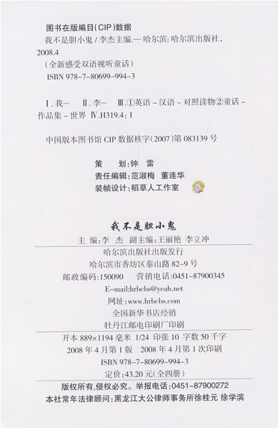据儿童专家研究发现,婴幼儿时期的儿童有着惊人的语言模仿能力,所以,锻炼孩子的语言能力,应该从娃娃抓起,为此,我们从幼儿的语言和心理需求出发,将拼音和英语有机地融入到生动的故事中,精心地设计、编排了这套适合幼儿阅读的双语故事丛书,使孩子通过双语对照阅读激发学习语言的兴趣,提高对语言的灵敏度。