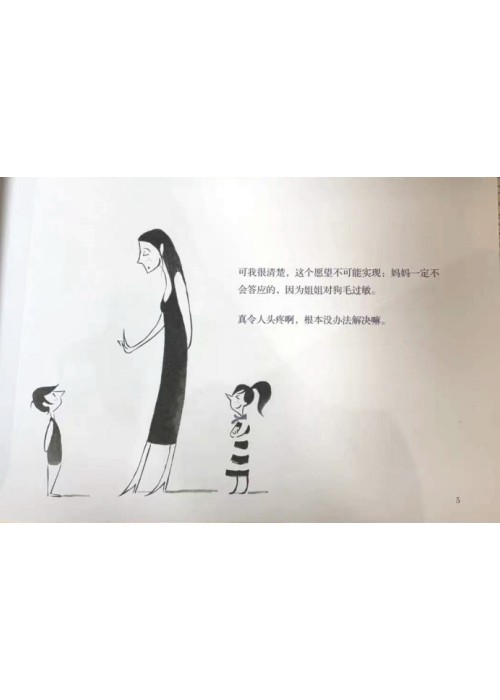 爸收 可我很清楚,这个愿望不可能实现:妈妈一定不 会答应的,因为姐姐对狗毛过敏。 真令人头疼啊,根本没办法解决嘛。