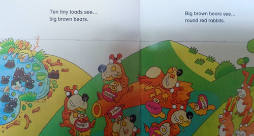 语言学习:本级图书每页以一个简短的句子为主,通过一两个单词的替换,使句型得以不断的重复。