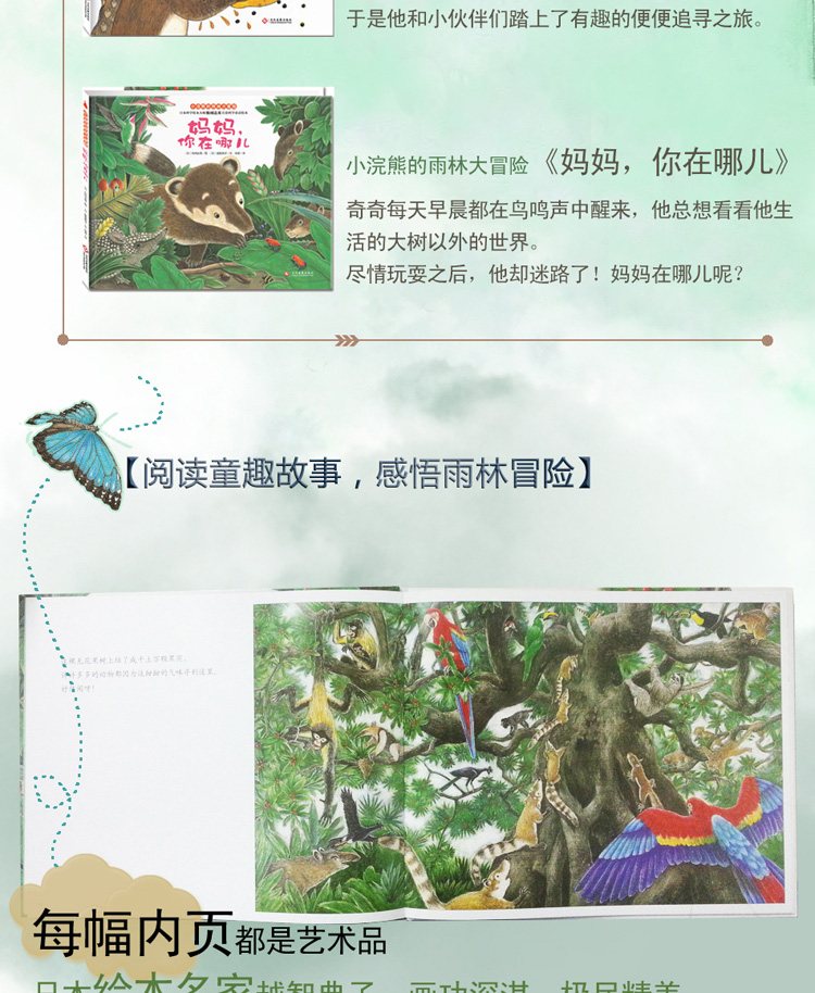 “小浣熊的雨林大冒险”系列是日本科学绘本大师松冈达英和日本绘本名家越智典子联袂创作的首套科学童话绘本。