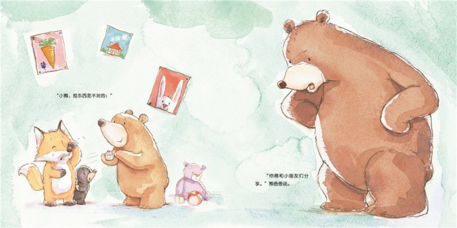 国际大师情商教养绘本馆系列共计18本,精选欧美国家优质绘本,真正国际大师级插画,绘画风格呈现出多样性,令中国孩子有机会欣赏到世界一流的作品,从而提高审美情趣,培养孩子的情商。《有礼貌的小熊熊》小熊刚开始很不听话,很不懂礼貌。有一次,熊爸爸带着小熊去参加小兔的生日聚会。熊爸爸通过一只玩具老鼠之口传递了懂礼貌、会分享等好习惯,小熊受到感染,也变得懂礼貌了。绘本通过小熊的变化,让孩子感受并学习社交中的礼仪礼貌,培养孩子的好性格和好习惯,有积极的教育意义。