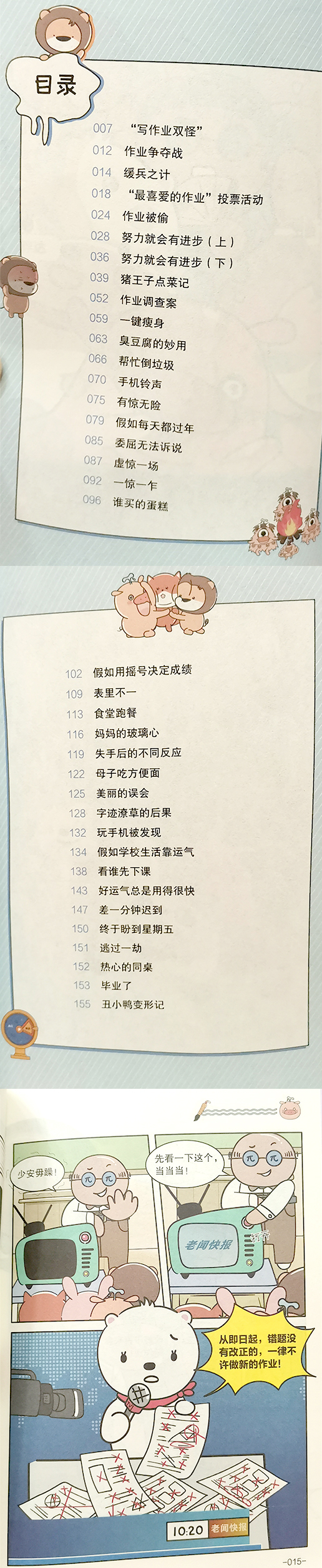 《小狮子赛几爆笑校园漫画》采用短小精干的阅读篇幅,以层出不穷的搞笑方式,打造专属学生党的幽默漫画。书中冷幽默的表现形式 容易引起学生的共鸣,能够让学生在轻松一笑中缓解学习压力,有效疏导负面情绪。真实的校园生活也能够让家长体验到孩子的不容易,借此促进亲子间的沟通和交流。《作业争夺战》描写了学生与作业之间的各种趣事,不睡觉也要写作业,嫌作业布置太少不狗血,排队参加作业新品发布会……轻松一笑中,帮助孩子找到学习的内驱力。阅读本书,也能够让家长体会孩子的内心想法,理解孩子的情绪,从而拉近亲子距离。