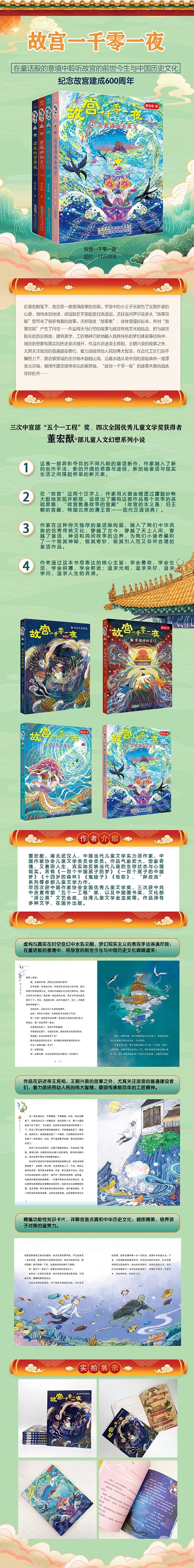 三次中宣部“五个一工程”奖、四次全国优秀儿童文学奖获得者董宏猷,倾情创作以故宫历史、文化为主题的儿童幻想小说——“故宫一千零一夜”系列。该系列为董宏猷首次创作系列儿童幻想小说,在其作品谱系中独树一帜。 在董宏猷笔下,故宫是一座装满故事的宫殿。宇宙中的小王子天郎为了实现外婆的心愿,悄悄来到地球,却因缺乏宇宙能量日渐虚弱,还好巫师萨尔蛮多从“故事宫殿”里带来了很多有趣的故事。天郎吸收“故事素”,身体慢慢好起来,并对“故事宫殿”产生了向往……作品将天马行空的故事与故宫传统文化相结合,把与故宫相关的历史典故、建筑美学、工匠精神巧妙地融入独具特色的梦幻体叙事结构中,瑰丽的想象和真实的历史渐次铺开。作品在讲述帝王将相、王朝兴衰的故事之外,尤其关注故宫的普通建设者们,着力颂扬劳动人民的伟大智慧。在古代工匠们的不懈努力下,建造紫禁城的金丝楠木翻越山海,沿着水路从南中国的原始森林一路漂至北京城,被用作建造雄伟恢弘的紫禁城,“故宫一千零一夜”的故事大幕也自此徐徐拉开……