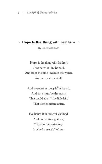 《云端的歌唱 : 世界最美的诗歌》精选30首优美的经典英文诗歌,配有译文,中英对照阅读,便于理解。这30首诗歌大多篇幅短小,语言精练,适合背诵。但在这些短小篇章中却蕴含着丰富的内容和深远的意境,给读者以思想上和艺术上的双重享受,启迪心智,陶冶情操。