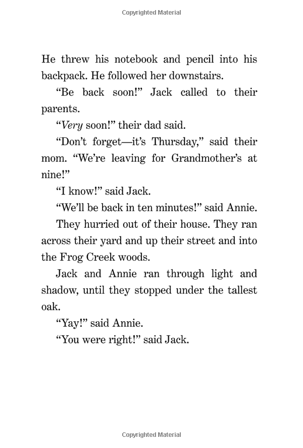Grade 1-3-- This enjoyable time-travel fantasy is a successful beginning chapter book. Jack and his younger sister find a tree house filled with books. When he wishes he could really see the Pteranodon pictured in one of them, it appears at the window. The children have been transported back to the Cretaceous period. They begin to explore and are soon threatened by a Tyrannosaurus. The Pteranodon comes to their rescue, and they figure out enough about the magic that carried them back in time to be able to use it to return home. There is plenty of suspense and magic here, and enough dinosaur information to please science buffs. Characterization is sketchy and older children will find the plot predictable, but readers just past the easy-to-read stage will find it satisfying. It should attract those who devour Ruth Chew's books. --Louise L. Sherman, Anna C. Scott School, Leonia, NJ