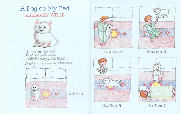 我们都知道,世界级畅销童书作家罗斯玛丽·威尔斯是非常热爱绘画和各种动物的 ,尤其是西高地白梗(西莎犬)。她在家就养了一只名叫苏菲的西沙犬,看来这个喜欢在床上和小女孩玩 耍的小狗就是苏菲哦。