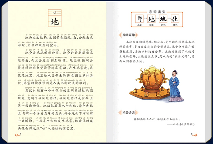 精美插图:全套图书附有色彩丰富的精美插图,诠释汉字的形与意的同时帮助孩子加深理解。