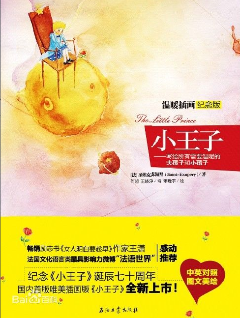 小王子是一个超凡脱俗的仙童,他住在一颗只比他大一丁点儿的小行星上。陪伴他的是一朵他非常喜爱的小玫瑰花。但小玫瑰花的虚荣心伤害了小王子对她的感情。小王子告别小行星,开始了遨游太空的旅行。他先后访问了六个行星他感到大人们荒唐可笑、太不正常。只有在其中一个点灯人的星球上,小王子才找到一个可以作为朋友的人。但点灯人的天地又十分狭小,除了点灯人他自己,不能容下第二个人。在地理学家的指点下,孤单的小王子来到人类居住的地球。 小王子发现人类缺乏想象力,只知像鹦鹉那样重复别人讲过的话。小王子这时越来越思念自己星球上的那枝小玫瑰。后来,小王子遇到一只小狐狸,小王子用耐心征服了小狐狸,与它结成了亲密的朋友。小狐狸把自己心中的秘密——肉眼看不见事物的本质,只有用心灵才能洞察一切——作为礼物,送给小王子。用这个秘密,小王子在撒哈拉大沙漠与遇险的飞行员一起找到了生命的泉水。