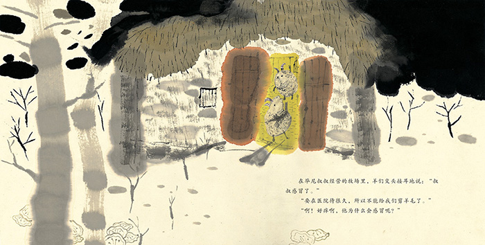 羊圈里的羊都不淡定了,因为利尼叔叔感冒了,就没人给它们剪羊毛。羊们觉得给利尼叔叔做一件羊绒大衣,这样他就不会感冒了。经过努力,一件充满爱意的羊绒大衣做成了。故事中的图画充满喜感,叙述事件的同时也在让孩子们在翻阅图画的时 候感受到来自作者的善意和爱意。