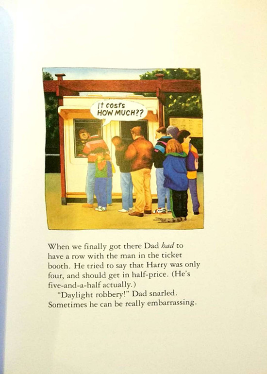 Dad, mum and two brothers spend a day at the zoo, looking at the animals in the cages - or is it the animals that are looking at them?