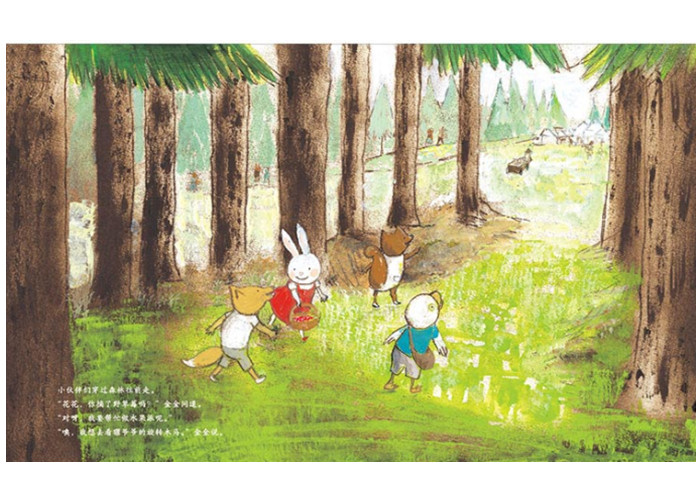 今天是一年一度的“花木村”庆典。住在冷杉公寓的小兔子、小狐狸、小鸭子和小栗鼠一大早就兴冲冲地前往会场,大人们正在那里准备这次盛大的庆典活动。小兔子帮忙做馅饼,小狐狸帮忙搭帐篷,大家都十分能干。庆典开始了,大家骑着旋转木马,随着音乐跳舞,每个人看起来都很喜气洋洋。在热闹的氛围里,大家满怀心愿地点燃灯笼,放飞祝福……
