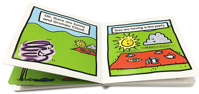 每本书以自然界中的云朵、雪花、太阳和龙卷风作为漫画的主人公,并赋予它们人的情感:云朵会发脾气、雪花会感到害怕、太阳拥有好心情、龙卷风常做冒傻气的事情。