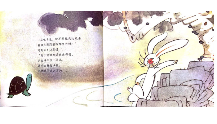 《龟兔赛跑》是詹同先生绘画、李一慢先生重述的图画故事书作品。故事源自伊索寓言,经重述后故事讲述的是:兔子和乌龟是一对好朋友,但兔子嫌乌龟爬得慢,于是要求和乌龟比赛跑步,兔子在半路上回头看到乌龟远远地被自己落在了身后,便停下来吃草打盹儿,可就在兔子休息的工夫,乌龟爬到了终点,很终赢得了比赛的优选。