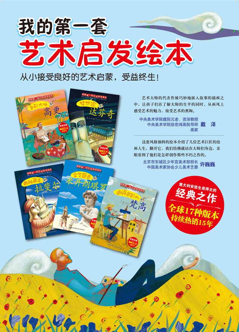 《我的第一套艺术启发绘本》精选这5位至今为止世界上最知名、最具影响力的艺术大师,用他们以及他们的代表作来给孩子最好的艺术启蒙。