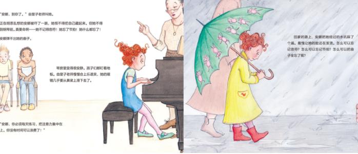 《练不好没关系》 不畏挫折,练习不辍,你就能弹好! 还有一周就要表演了,可安娜还弹不好她的曲子。她着急地哭了,大滴的眼泪滚落到钢琴的琴键上。 这时,有个声音对她说:“亲爱的安娜,你把我弄湿了!” 安娜惊讶地看着眼前的钢琴……
