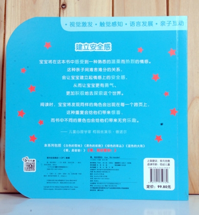 这是一本可以和孩子一起分享的亲子视觉刺激绘本,纸板书。是插画师埃米尔·林和专门从事婴幼儿成长研究的心理精神学家共同为低幼孩子创作。每本6个跨页,使用对比鲜明的色彩和植绒、烫金、烫银、光栅、击凸、击凹等印刷工艺带来视觉和感官的刺激。