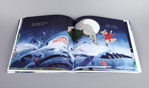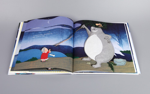 全书采用布艺拼贴与绘画相结合的创作手法。红色布料和白色蕾丝花边缝制的裙子,绿色毛线作成的怪兽头发,洒满亮晶晶的小石头的海滩。插画家九儿与小小兰用匠心为孩子们搭建起了一个绮丽的梦。