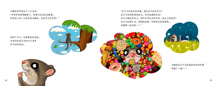 于是,在小动物们的帮助下,小睡鼠尝试了各种入睡方法,数羊、听故事、倒挂金钩睡……可是还是睡不着。