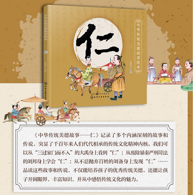 这本《仁》记录了多个内涵深刻的故事和传说,突显了千百年来人们代代相承的传统文化精神内核。我们可以从“三过家门而不入”的大禹身上看到“仁”;从废除暴秦严刑苛法的刘邦身上学会“仁”;从不忍抛弃百姓的刘备身上发现“仁”……品读这些故事和传说,不仅能开阔眼界,丰富知识,还可以从中感悟传统文化的魅力。