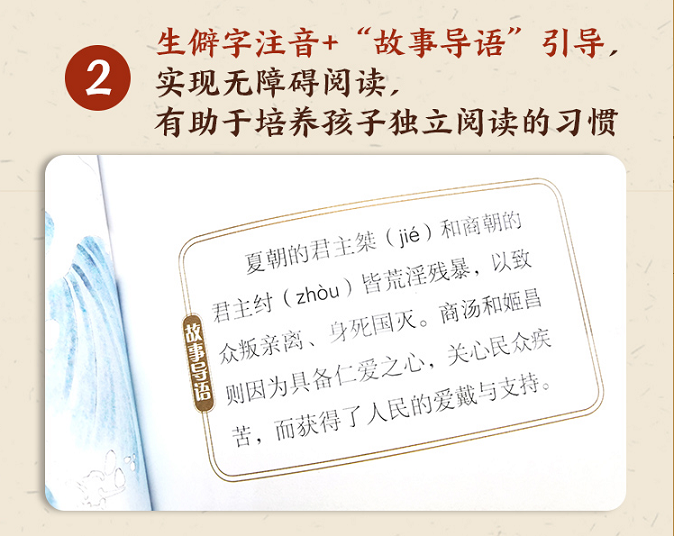 2.每篇故事均配有出处介绍、内容导读,不只是讲故事,更然孩子能够理解故事的含义;