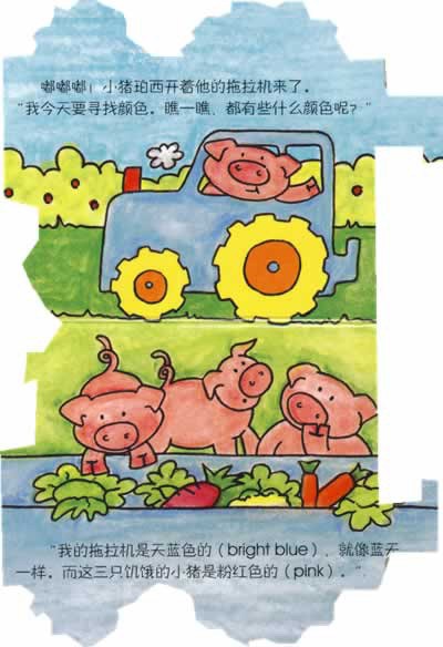 把一个可爱的“拖拉机头”和两个带挂钩的“车厢”卡在一起,小拖拉机便组装完毕了!司机小猪带大家开始有趣的冒险旅程。一路上,可以看到很多农场的动物朋友们,他们不仅会和小朋友快乐地玩,而且还会教给小朋友关于颜色、形状和反义词的知识! 颜色、形状和反义词名称附有对应英文单词,小朋友可以在玩耍中自然接触英语。