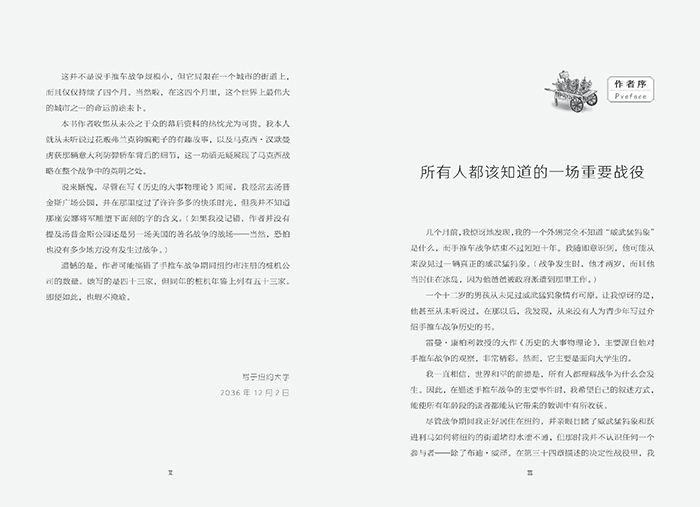 《手推车大作战》也讲述了一场战争。然而从很多角度来说,这本书都是一本奇书,是童书里的稀缺品种。《纽约时报》曾评论道:“除了《手推车大作战》,你还能找出第二本童书,里面几乎没有儿童出场,主角都是大人吗?”